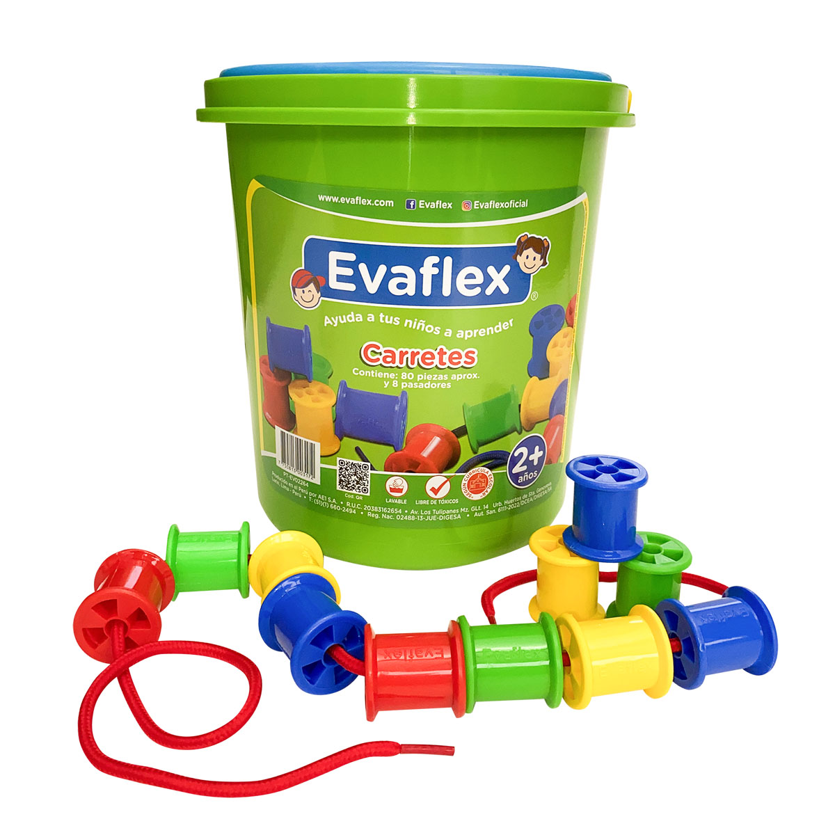 Las actividades de ensarte y manipulación ayudan a fortalecer la motricidad fina desde temprana edad. BALDE CARRETES C/80 PZAS favorece la coordinación mano-ojo, la concentración y el control motriz al insertar, pasar o acomodar piezas de 80 piezas. Es ideal para casa o aula por su valor práctico y repetitivo en el aprendizaje.