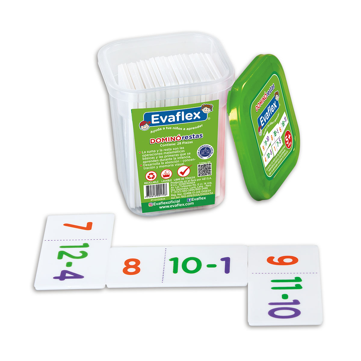 Las matemáticas se comprenden mejor cuando los niños pueden ver y manipular los conceptos. DOMINO/PLASTICO RESTAS C/28 es un material didáctico Evaflex que favorece razonamiento lógico, cálculo y comprensión matemática a través de actividades visuales y concretas. Ideal para casa o aula, convierte el aprendizaje en una experiencia práctica, clara y significativa.
