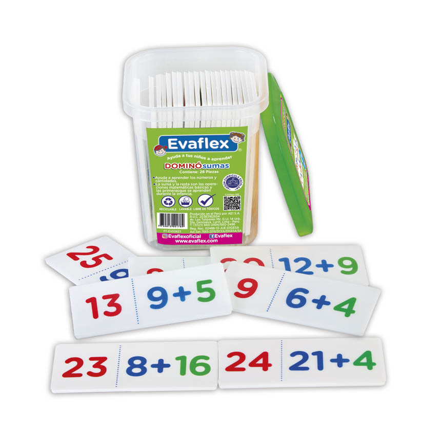 Las matemáticas se comprenden mejor cuando los niños pueden ver y manipular los conceptos. DOMINO/PLASTICO SUMAS C/28 es un material didáctico Evaflex que favorece razonamiento lógico, cálculo y comprensión matemática a través de actividades visuales y concretas. Ideal para casa o aula, convierte el aprendizaje en una experiencia práctica, clara y significativa.